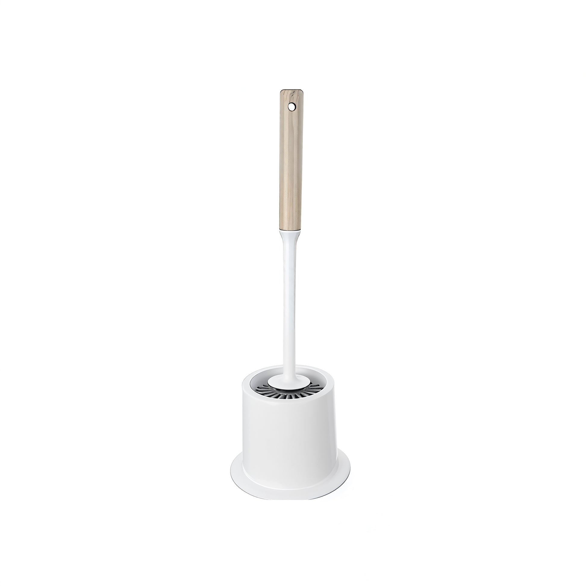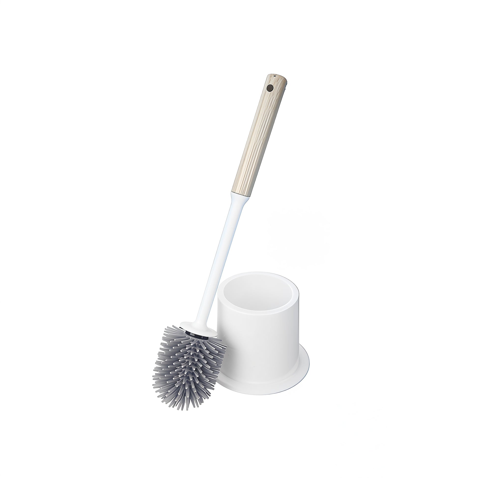 This toilet brush combines practicality with a modern look, crafted from flexible silicone and featuring an elegant wooden handle.