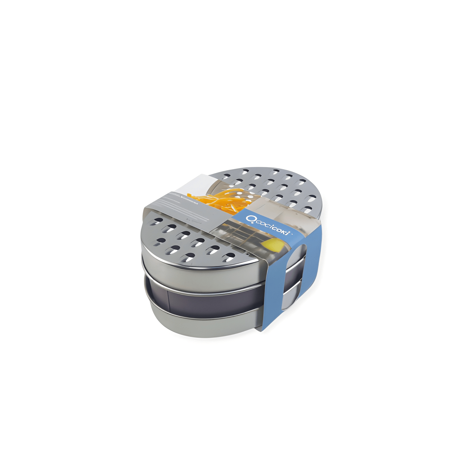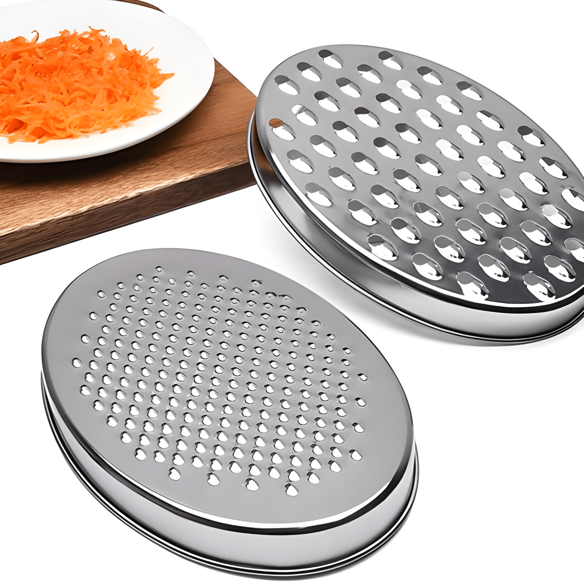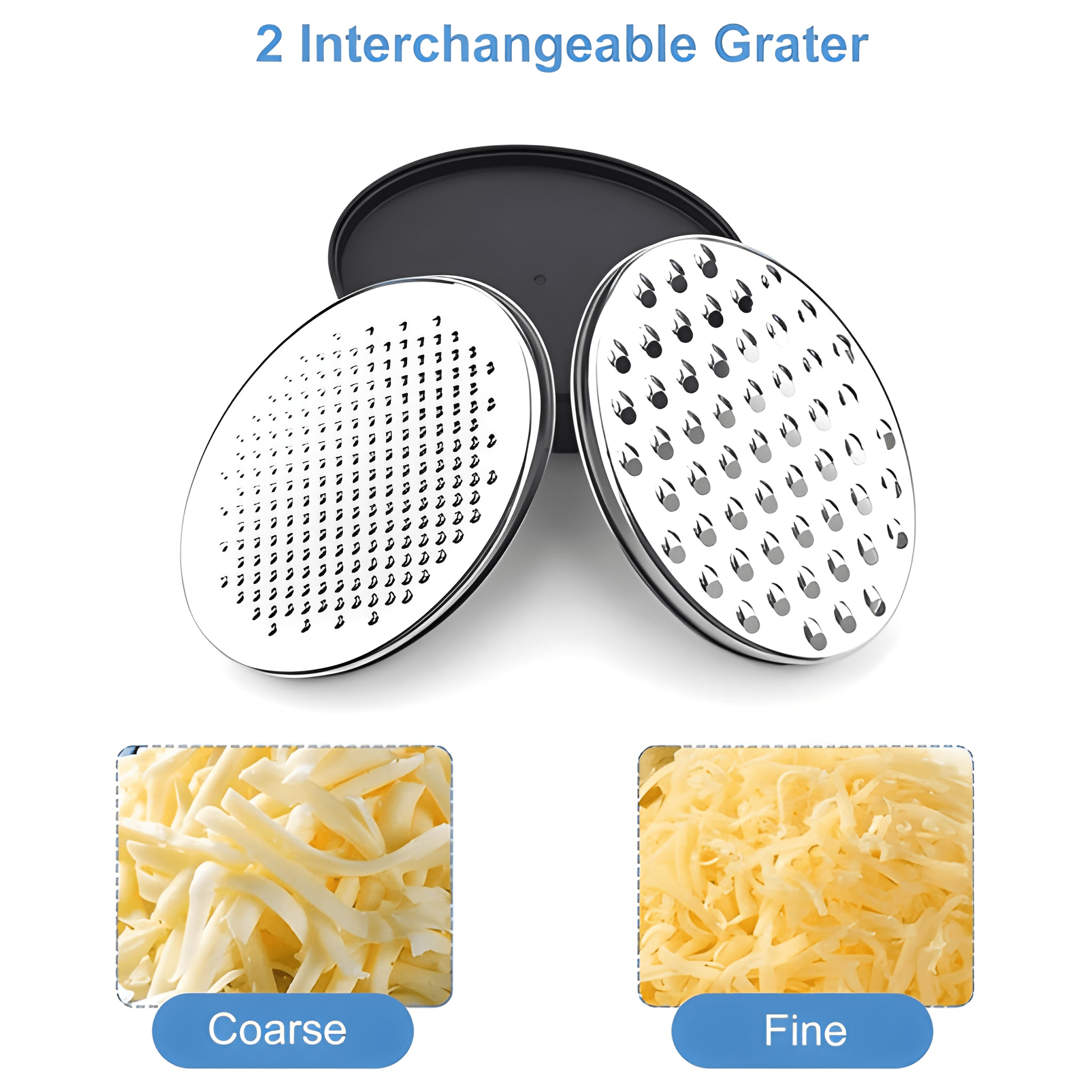 No more mess while grating. This 2-in-1 grater (fine & coarse) features a built-in container to collect everything neatly. Perfect for cheese, vegetables, chocolate, ginger, and garlic. Available in pink and light gray to suit your kitchen.