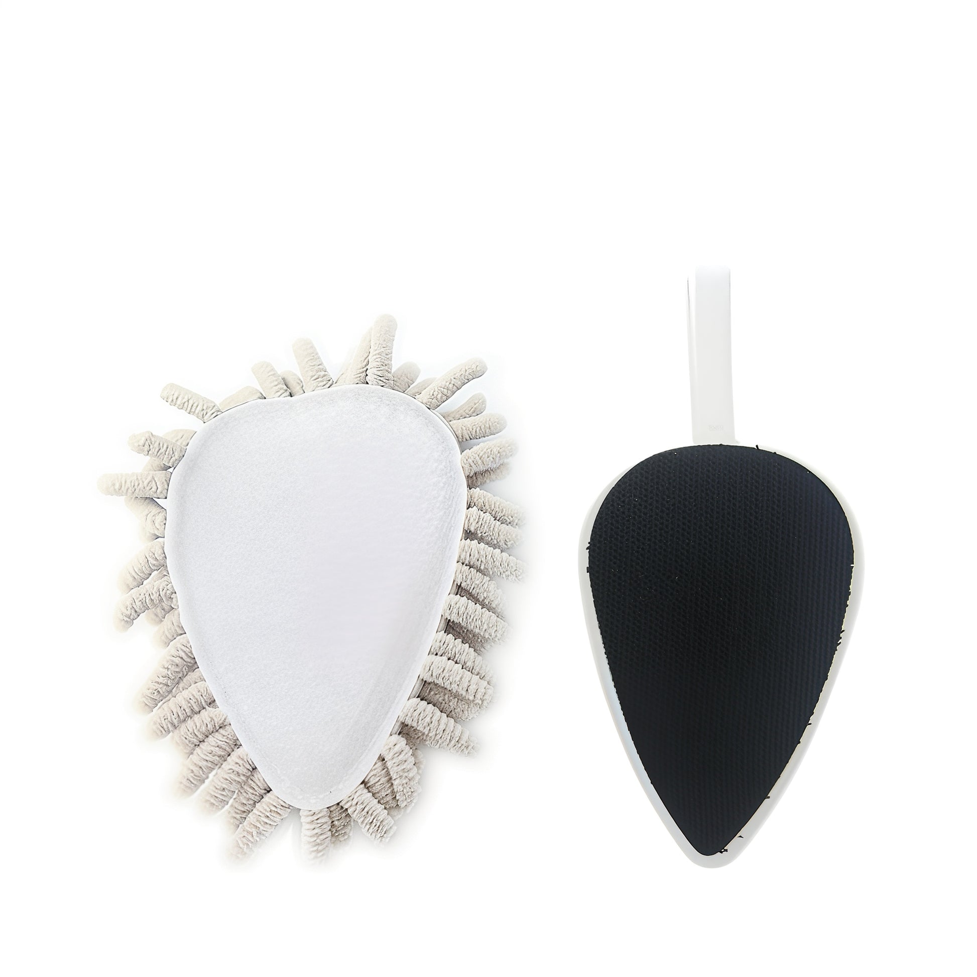 A practical design combining a wooden and plastic handle with a detachable cloth head for effective and easy-to-wash cleaning